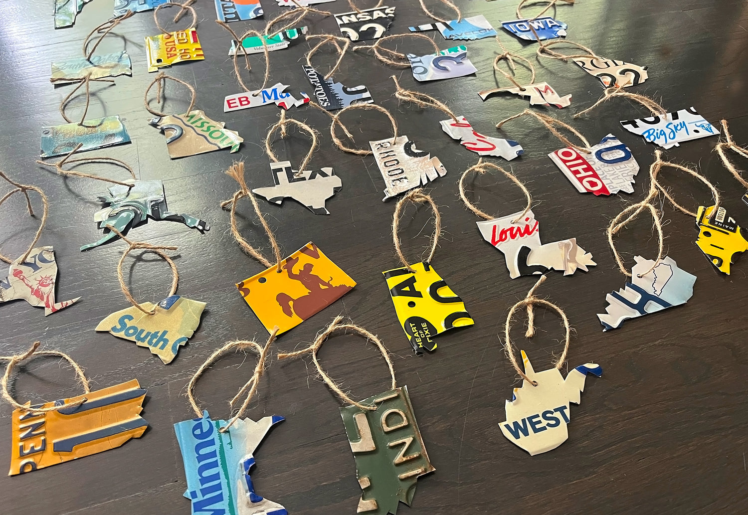 Made from an actual vintage license plate in the fun shape the state of your choice, this ornament will look great on any Christmas tree no matter what the theme! Rustic, modern, industrial, contemporary... Great for a stocking stuffer or as a gift to a friend from another part of the country. All handmade, cut by hand.